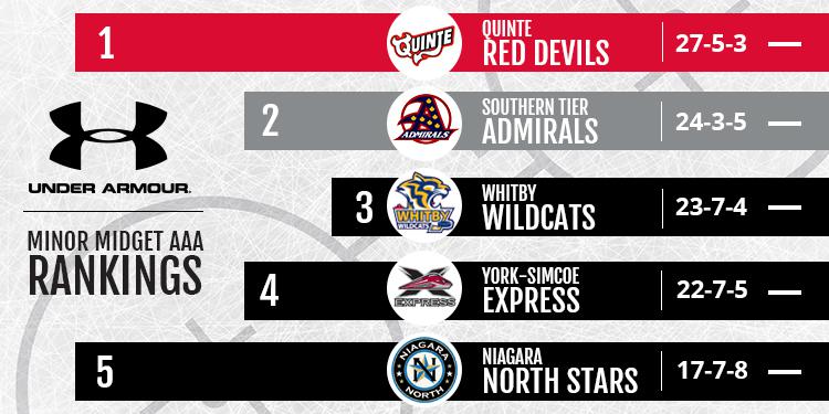 The OMHA Minor Midget and Midget AAA Rankings powered by Under Armour are submitted by a group of scouts from the Ontario Hockey League and are released on a bi-weekly basis.