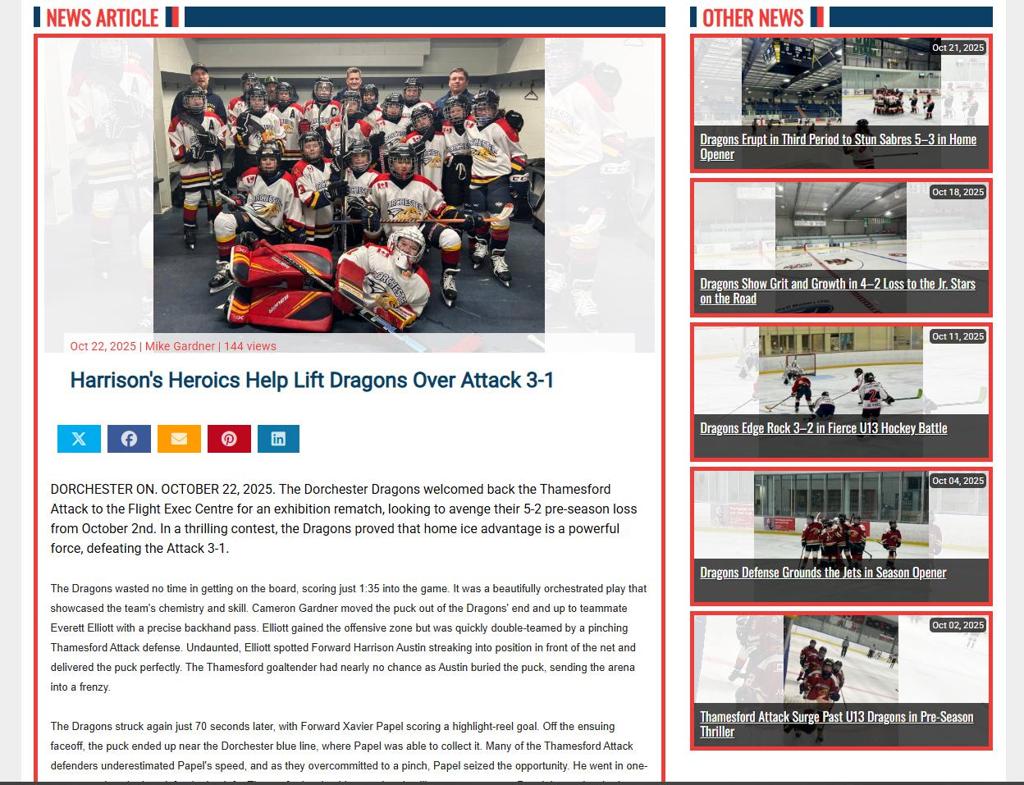 The idea to write the recap sports articles for the team just came from taking a few minutes to learn the utilities of the Dorchester provided website and Sportsheadz admin control panel. I saw it as an option in the control panel and I remembered how fun it was for me when I was a high school and university athlete and seeing articles posted in the sports pages of the local and school papers. My players last year also really liked when I was able to help get print articles into our local paper the Dorchester Signpost. So filling in a brief game recap on the website seemed like an easy way to help make the season more memorable for the kids.