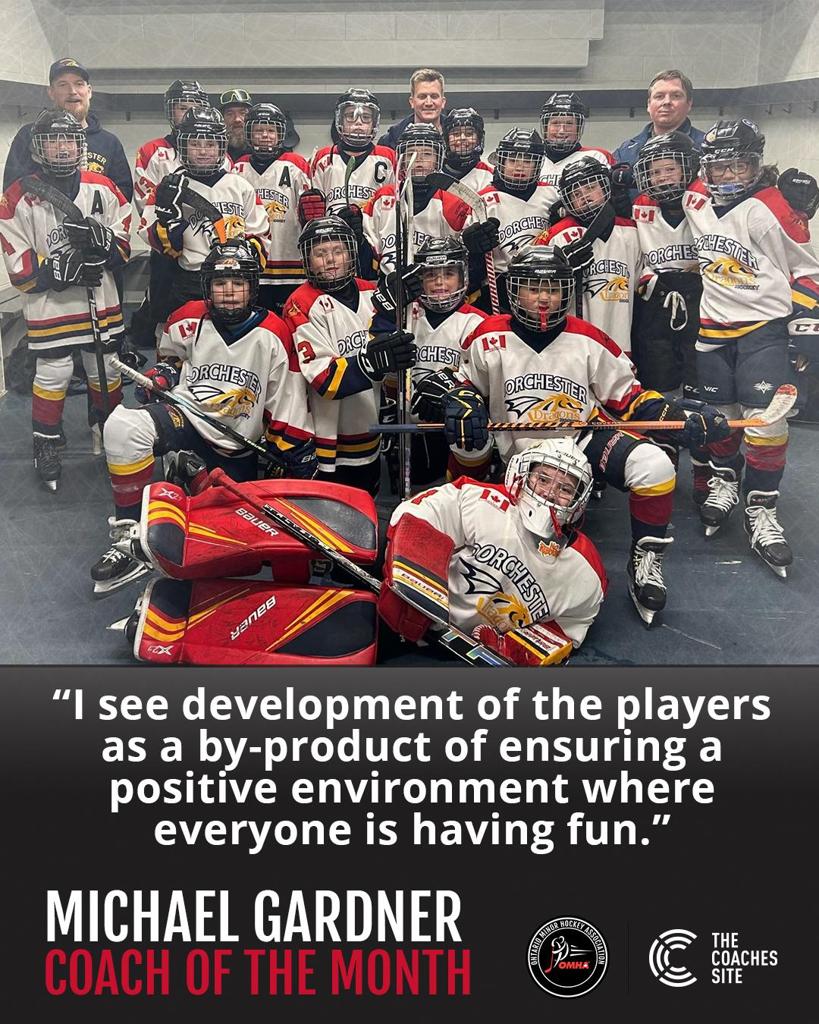 This season marks the ninth year of the OMHA Coach of the Month presented by The Coaches Site. We asked for nominations of deserving coaches and after much deliberation, Michael Gardner of the Dorchester U13 Local League team was selected as the Coach of the Month for October.