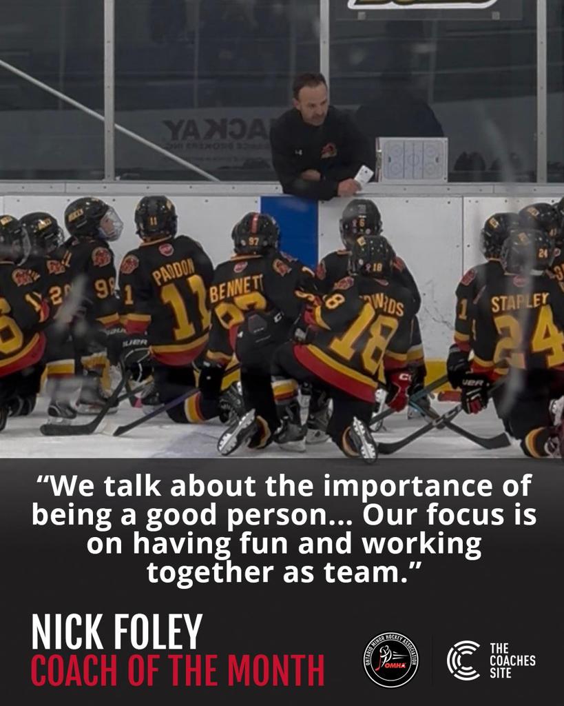 This season marks the ninth year of the OMHA Coach of the Month presented by The Coaches Site. We asked for nominations of deserving coaches and after much deliberation, Nick Foley of the Belleville U10 AA team was selected as the Coach of the Month for January.