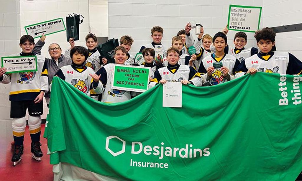 Thhis season, the Ontario Minor Hockey Association (OMHA) and Desjardins Insurance teamed up again to sponsor 382 hockey teams across the province. Each team was provided with $600 in direct funding in exchange for putting a Desjardins Insurance patch on their jerseys.