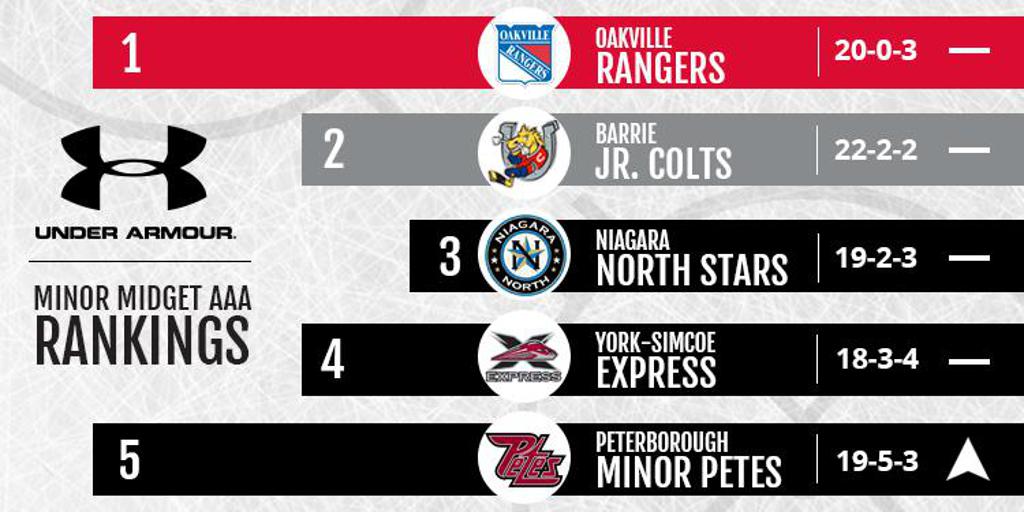The OMHA Minor Midget and Midget AAA Rankings powered by Under Armour are submitted by a group of scouts from the Ontario Hockey League and are released on a bi-weekly basis.