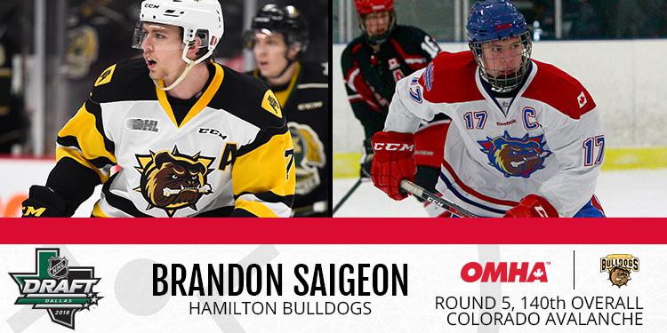 | Brandon Saigeon | Grimsby | F | Hamilton Jr. Bulldogs | Colorado (5, 140) |